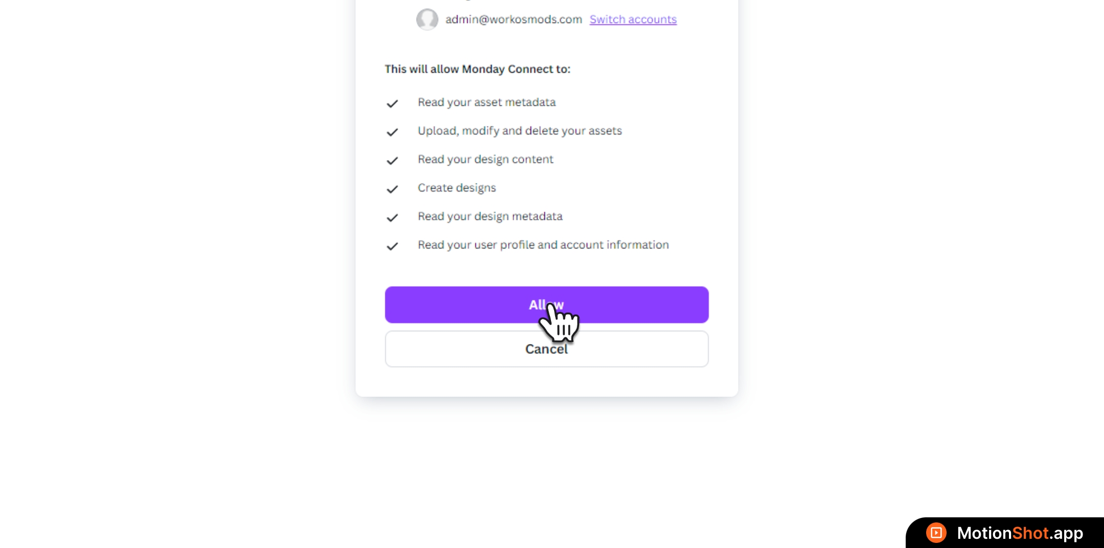 Click the 'Allow' button to authorize Canva access
