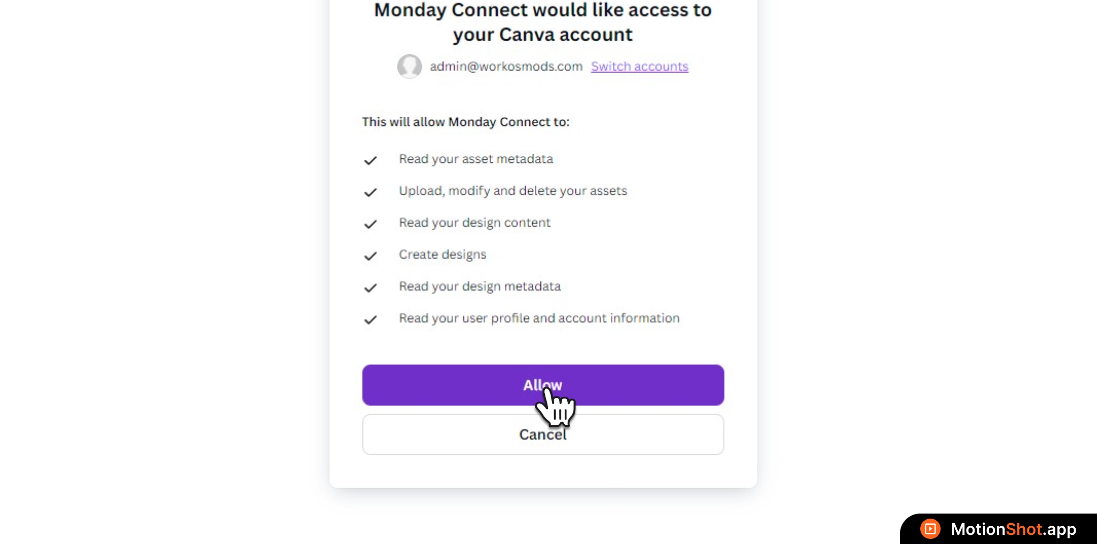 ' button to grant monday access